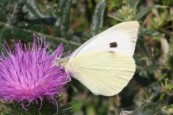 Der größte unserer Weißlinge. Hier ein deutlich erkennbares Weibchen. Den Männchen fehlen die schwarzen Flecke auf der Oberseite der Vorderflügel.