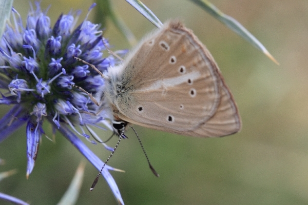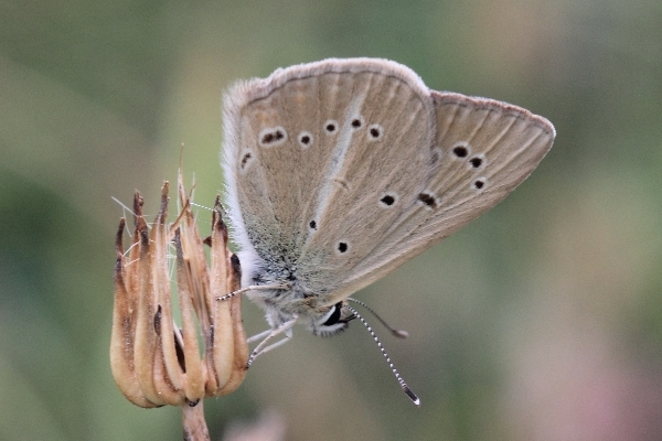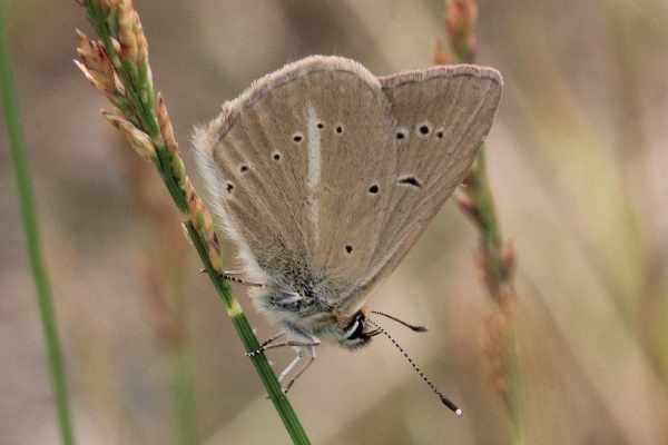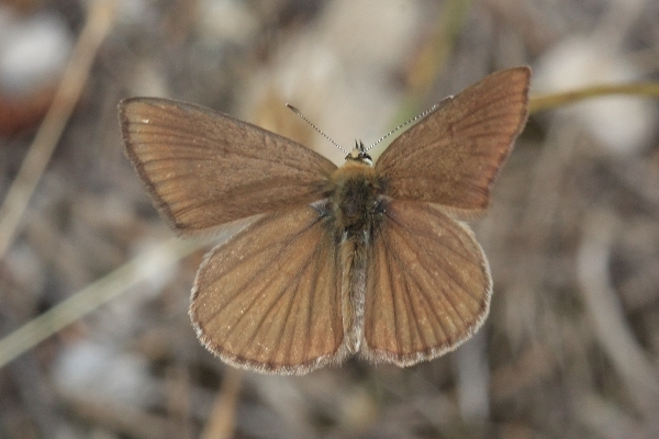 Einer von mehreren Bläulingen mit dem weißen Streifen auf der Unterseite, die in beiden Geschlechtern braune Oberseiten aufweiden.