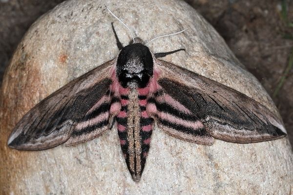 Ein ziemlich großer Schwärmer. Auf diesem Foto von einer Flügelspitze zur anderen gemessen ungefähr 9 cm.